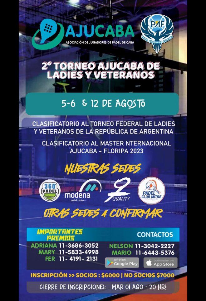 »» Evento: 2do. TORNEO DE LADIES & VETERANOS 2023 »» Localidad: Capital Federal »» Fechas: 05/08/2023 al 12/08/2023
