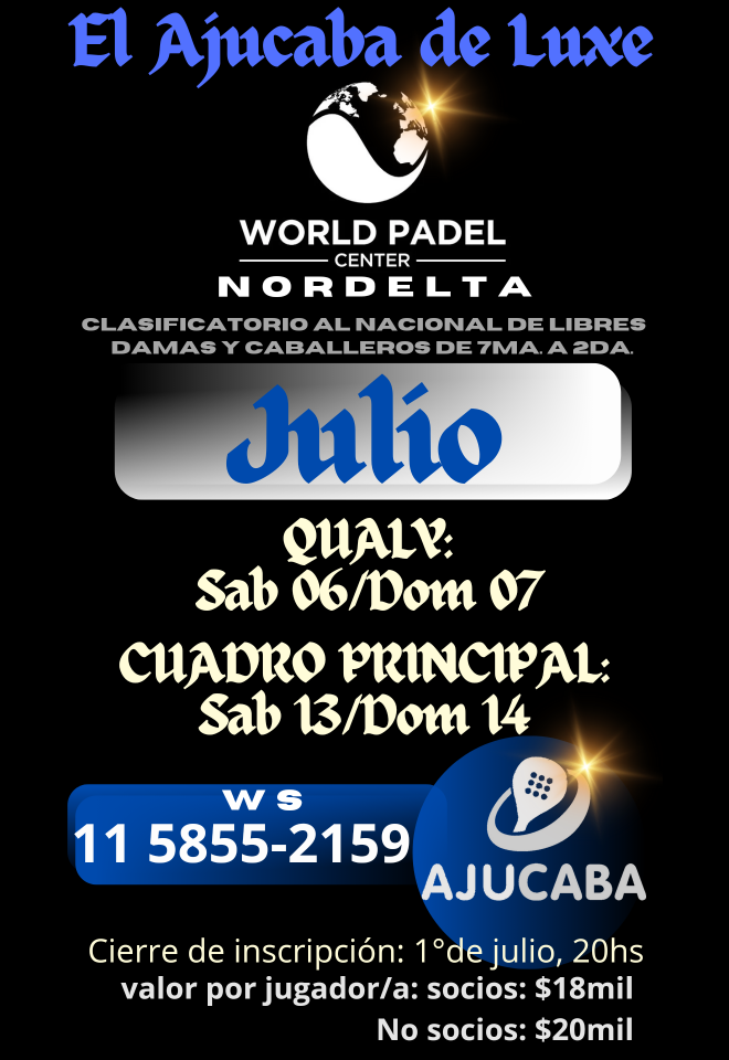 »» Evento: El AJUCABA de LUXE -3er. Torneo de Libres 2024- »» Localidad: Capital Federal »» Fechas: 06/07/2024 al 14/07/2024