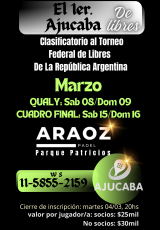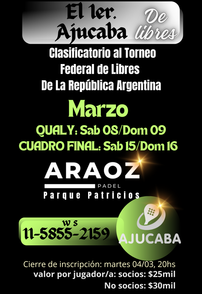 »» Evento: 1er. TORNEO AJUCABA DE LIBRES 2025 »» Localidad: Capital Federal »» Fechas: 08/03/2025 al 16/03/2025